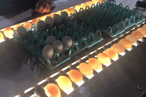 在经过光照流水线时,像蛋黄与蛋清分离、蛋黄贴近蛋壳,这些“坏蛋”们,都将被剔除。