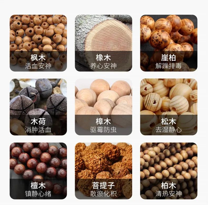 枫木、橡木:养心安神 崖柏:防潮抗菌