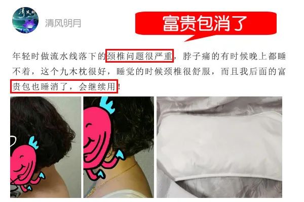 因为颈椎压迫神经,颈肩淤堵形成的“富贵包”,在睡了这款九木枕一段时间后,也明显消除了!