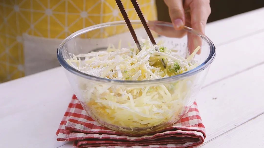 1.如果面粉放的多一些,煎出来的会更加的软,但土豆丝没有那么根根分明,也可以根据自己的口味添加一些胡椒粉之类的。