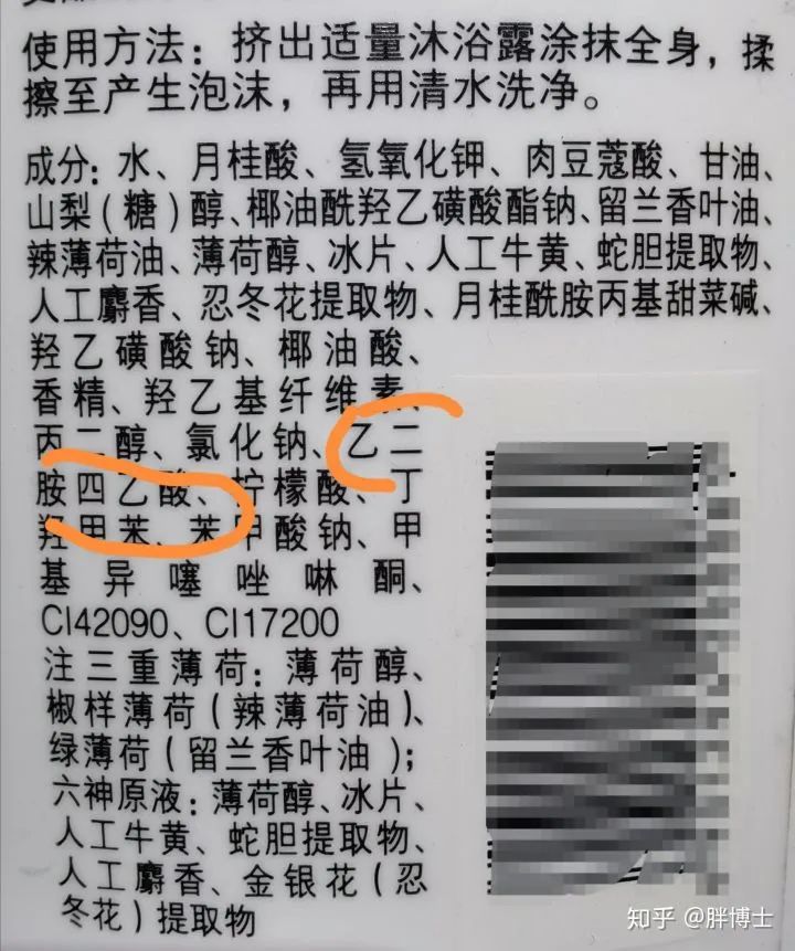 某沐浴露成分,其中就含有螯合剂(橙色标注)