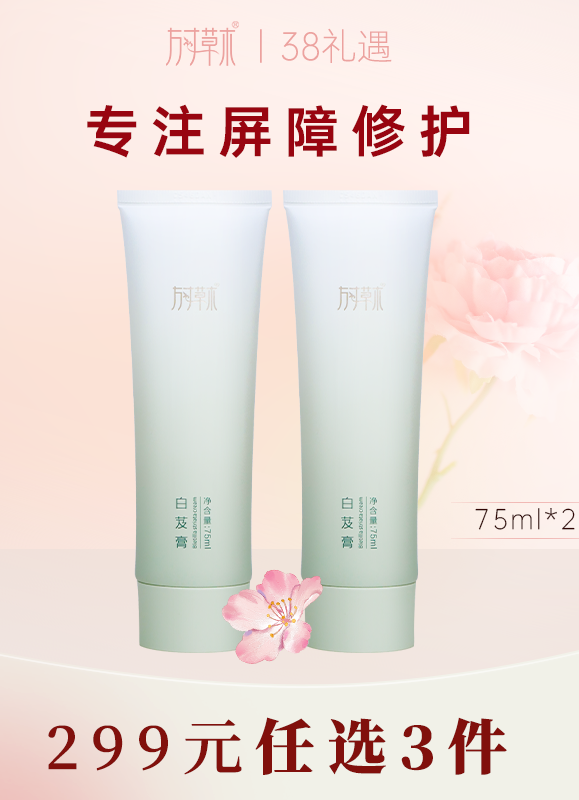 在保湿前提下,三七忍冬花抗炎+白芨天冬修护,两步协同修护屏障。