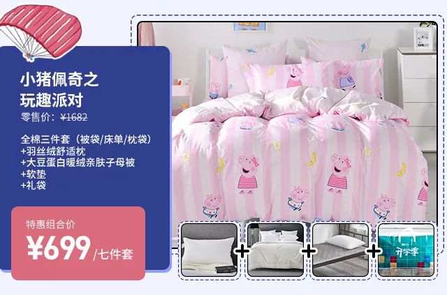 开学大礼包升级版,全棉三件套花色更多,为寝室生活带来不一样的新鲜感,和宝贝一起选购自己心仪的花款吧。