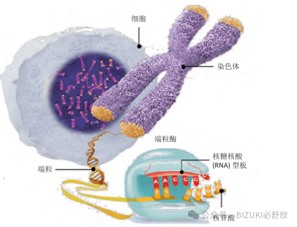 线粒体——被誉为细胞的“能量工厂”,是细胞内负责能量转换的重要细胞器。它们通过氧化磷酸化过程,将食物分子氧化并释放出能量,这些能量被用于驱动ATP(腺苷三磷酸)的合成,为细胞提供动力以执行重要功能,包括呼吸、思考、交谈和行走。线粒体不仅关乎细胞的活力,还参与调控细胞代谢、信号传递以及生死周期等关键过程。随着年龄的增长,线粒体功能逐渐下降,导致细胞能量供应不足,进而引发一系列衰老现象。端粒体——是染色体末端的特殊结构,由重复的非编码DNA序列和与之结合的蛋白质组成。它们的主要作用是保护染色体末端不被错误地识别为DNA损伤,从而避免触发DNA修复机制导致染色体不稳定。