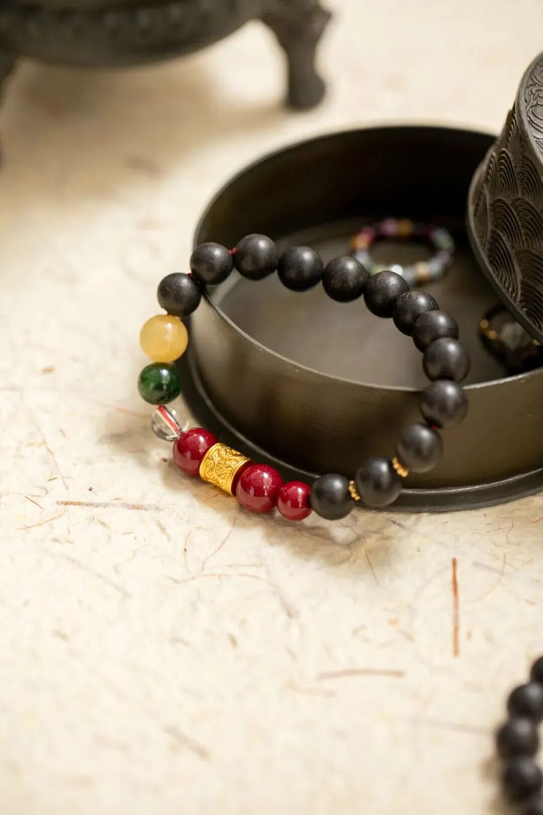 此手串旨在捕捉瀚墨留香的意象,将藏书楼阁的沉静、深邃与文运昌隆之气,凝炼于方寸之间。