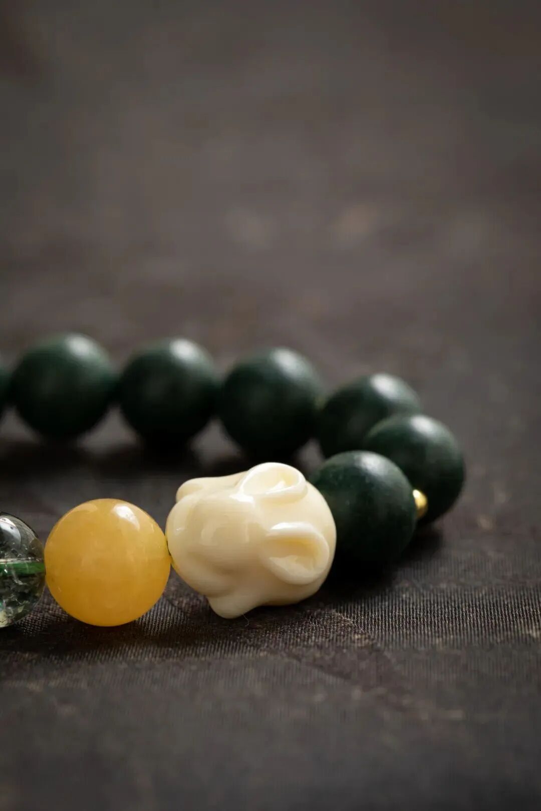 米黄玉,色泽蜜润,质地温和,让人想起大地的滋养与包容,为整体注入温暖底蕴。