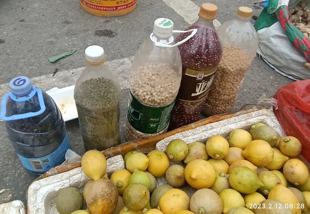 虽然没买到丝苗米,但在菜市场看到很多农户拿着塑料瓶装的自家留种的各种豆子,也买了一些回来,当地正是释迦果的最后时期,一并买了一些送给刘哥。