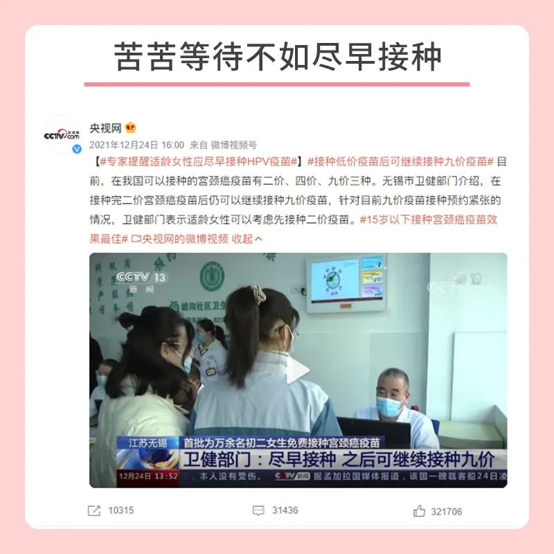 #专家提醒适龄女性应尽早接种HPV疫苗#