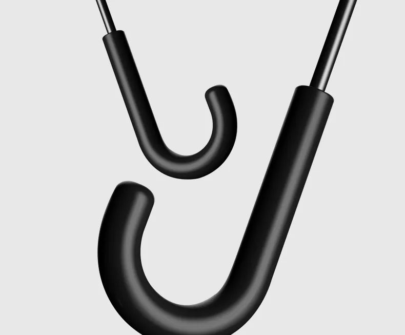 适合小孩子的手握的弯钩伞柄,没有一丝毛刺,通体圆滑,手握的手感舒适,当收起伞时,还能把弯钩当作挂钩挂伞。