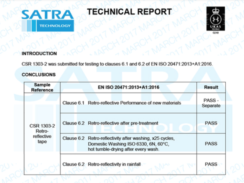 反光条符合欧洲防护类标准,通过数次雨淋测试,所以大可放心。