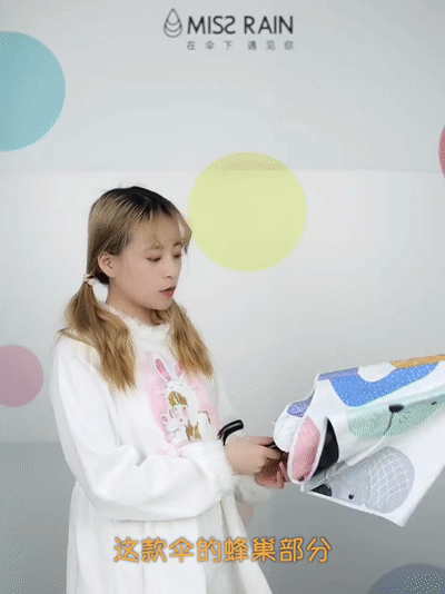 所以Missrain儿童伞采用的是自推拉式蜂巢设计,一推一拉就能开合,一点也不用担心夹手。