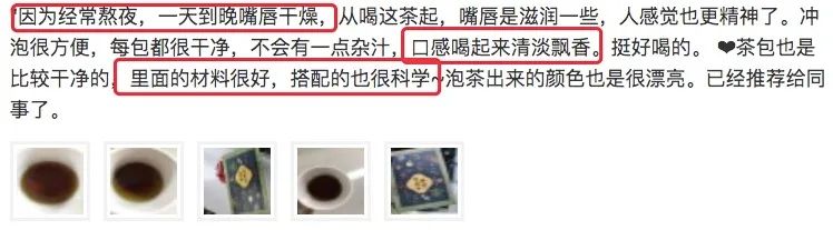 味道也很不错,不是那种熬煮后浓郁难闻的中草药味,是清清爽爽的草本香气,喝完有淡淡回甘。