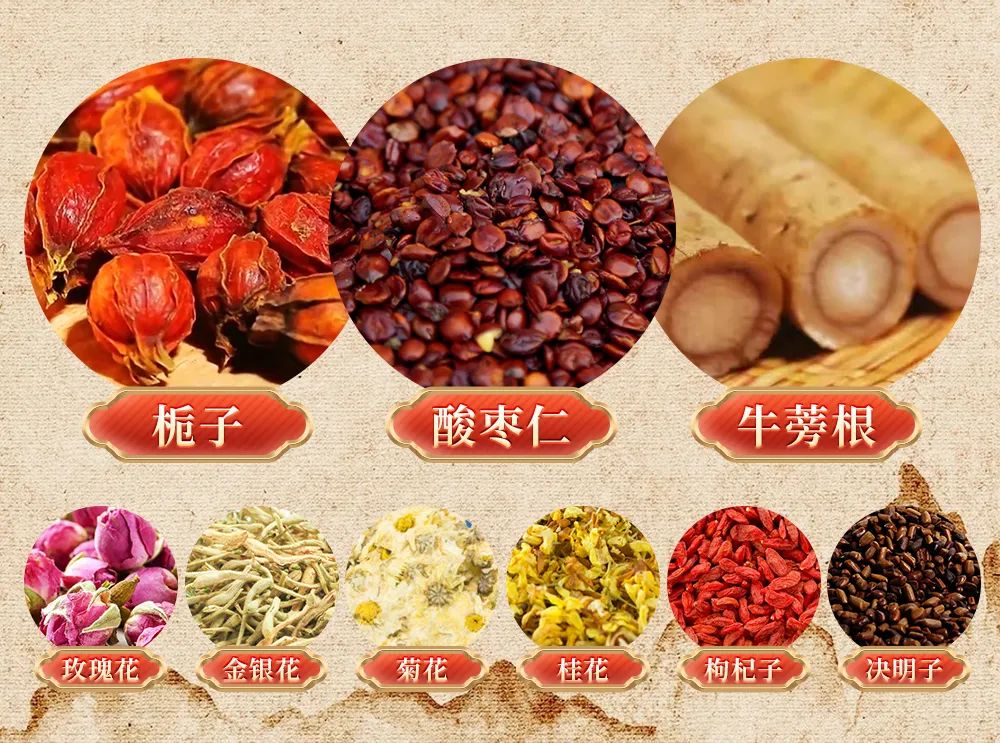 雷允上7位老中医,根据祖上300多年老方子,再根据现代人的饮食习惯,在传统杞菊饮的基础上加入了决明子、栀子、重瓣玫瑰花、桂花、牛蒡根、金银花,还添加了酸枣仁。