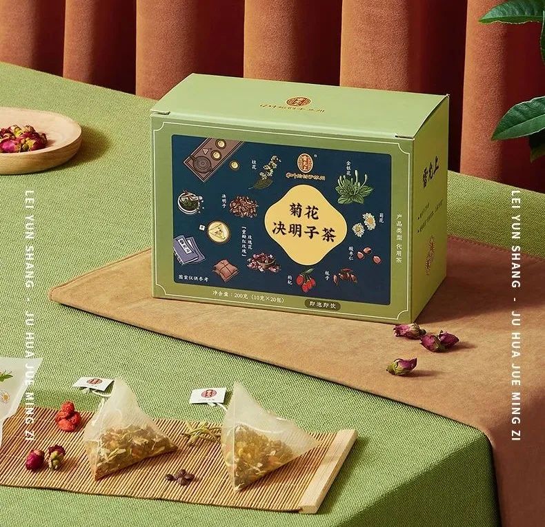 百年老字号雷允上在此基础上,又加入了决明子、酸枣仁、牛蒡、金银花等九种天然食材,按古方比例组合成这款——菊花决明子茶。 放在一个小茶包里,方便快捷,帮你呵护肝脏。