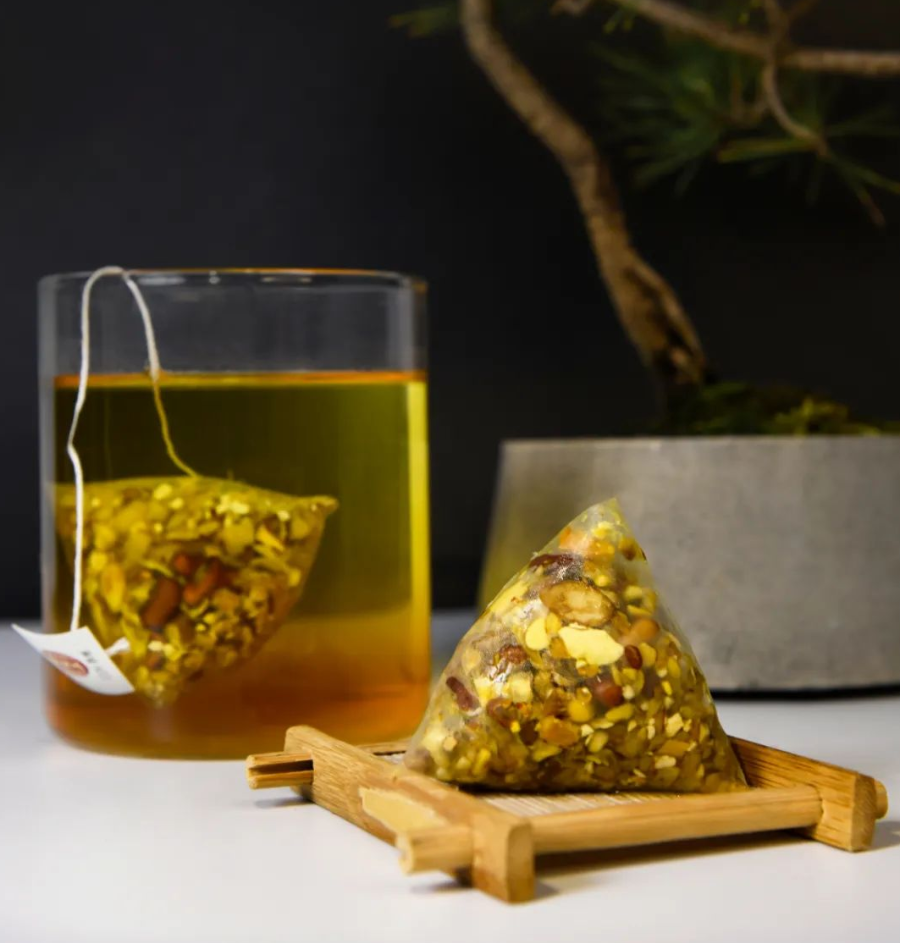 喝起来也十分方便,精心研磨食材后在漂亮的三角茶包里,满满的都是料,用100度开水冲泡,就能释放大部分营养成分。