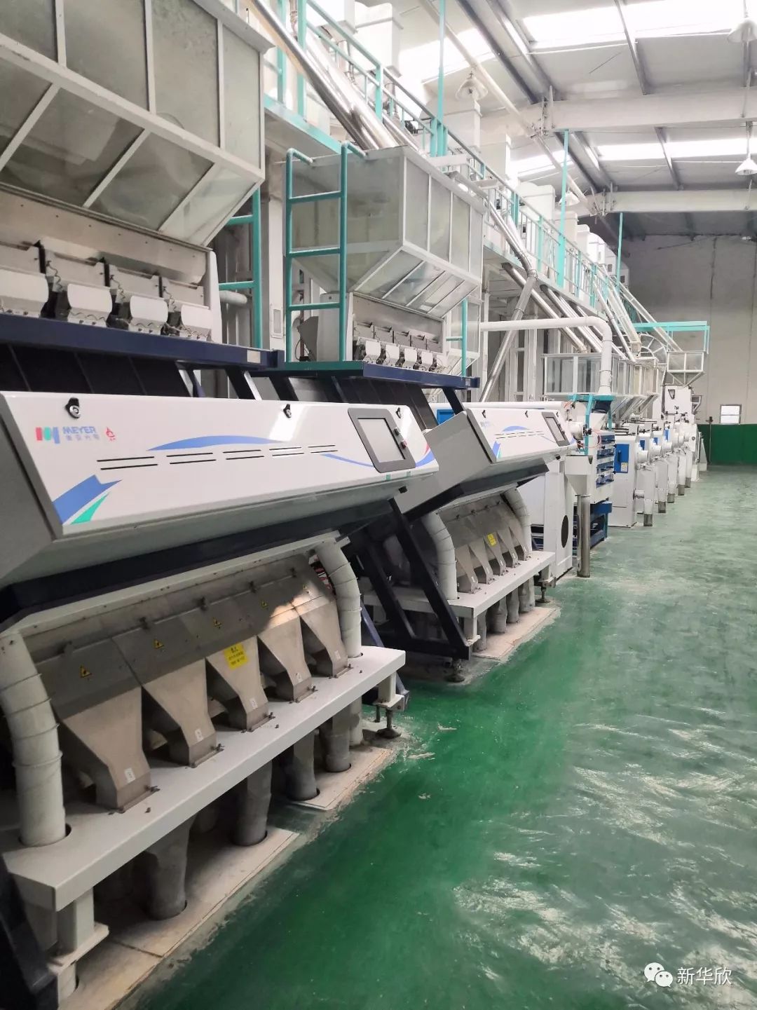 稻谷从进厂到出厂,每一道工序都为了挑选出更优质的稻米。两个大罐可装40万吨稻谷,从源头上保证了品种的纯正,不会掺杂其他品种,保证了新华欣贡米的优质。接着会通过20道工序的精雕细琢,对稻谷进行剥壳、筛选、抛光、挑色,确保所有的贡米无杂质、无碎米、无杂色,真正用机械化的操作保证了新华欣贡米的质量!