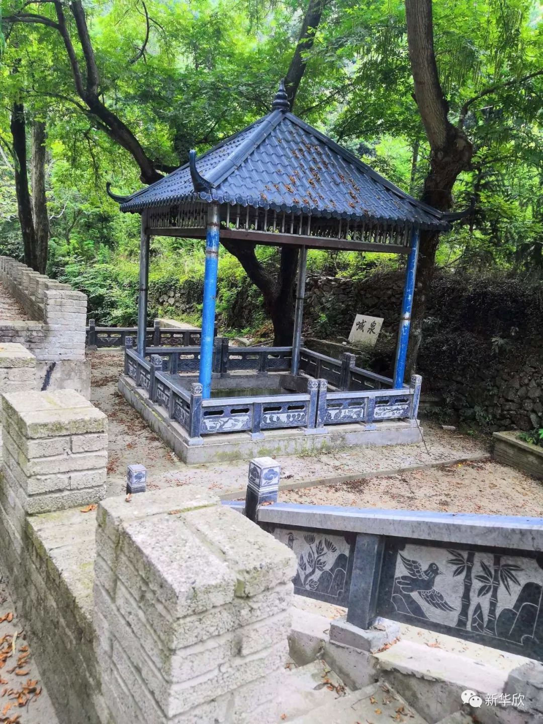 初入谷城茨河,会被这满眼的青山绿水所吸引,天空下着小雨,一切透着郁郁葱葱的生气。绕过曲折的山路,便看到了茨河九大名泉之一的——喊泉。