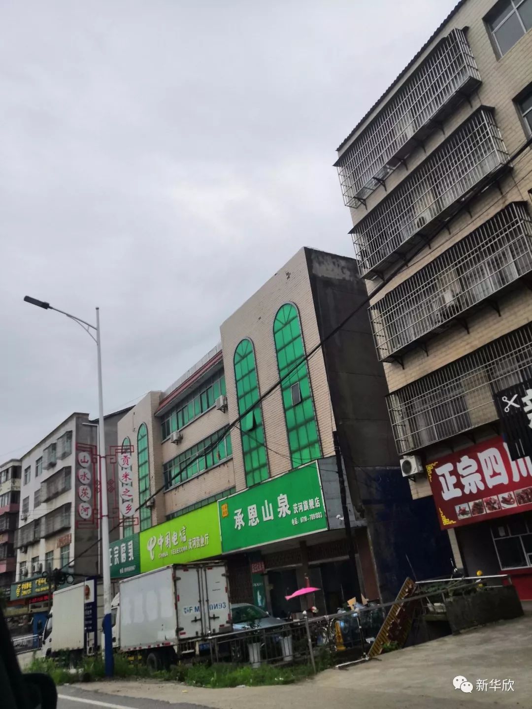 ▲茨河小镇沿途都挂着“贡米之乡”、“泉水之乡”、“腐乳之乡”的宣传牌