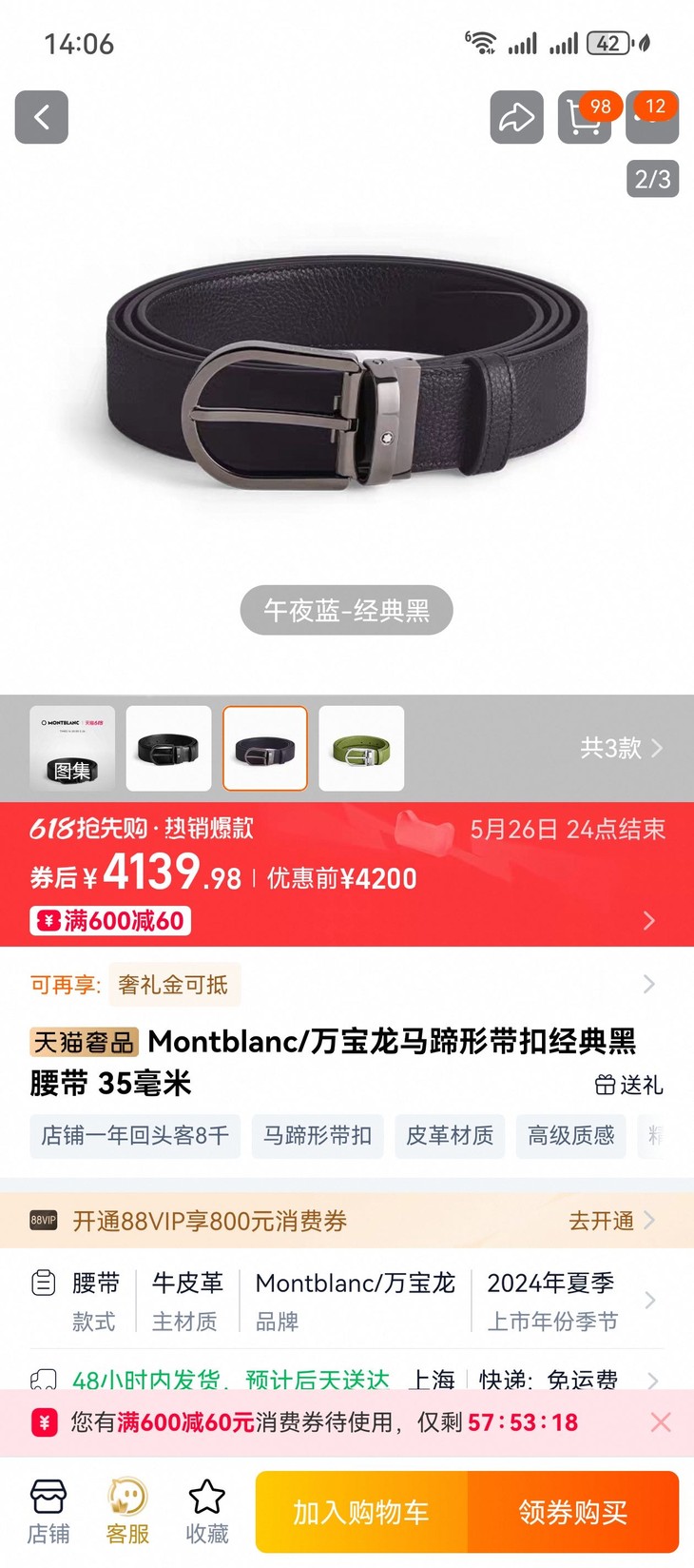 montb1anc 万B龙双面旋转带头 男士腰带。