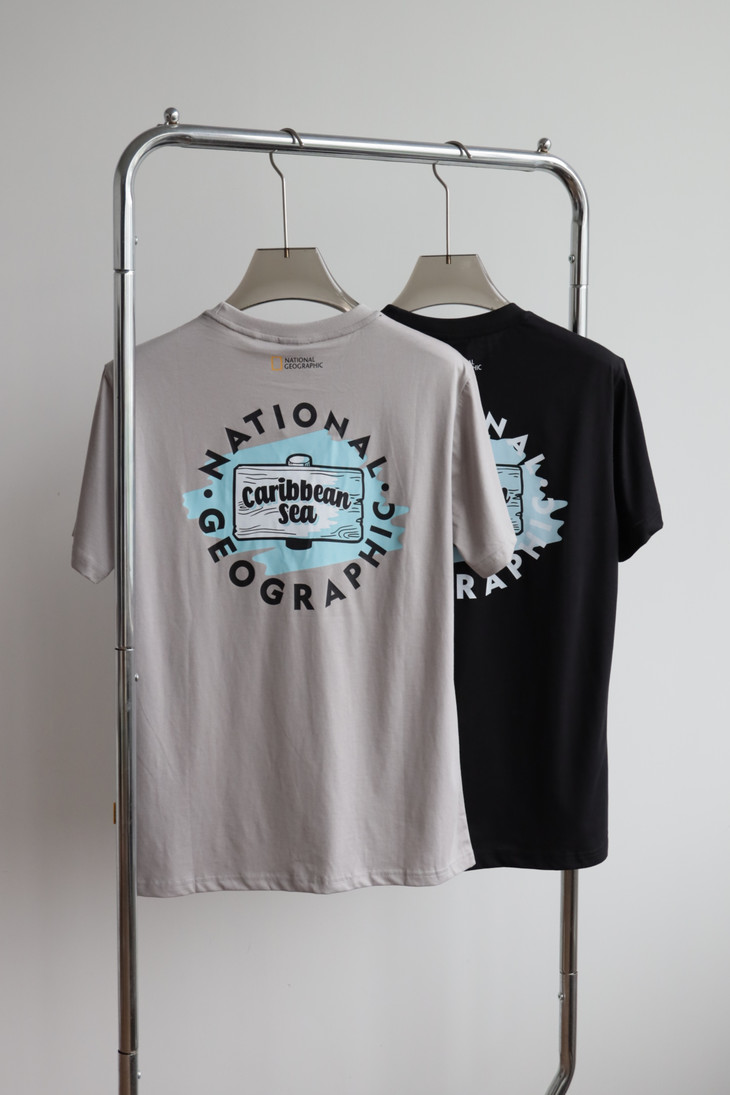国家D理 CAR1BBEAN SEA 圖樣 圆领短袖T恤