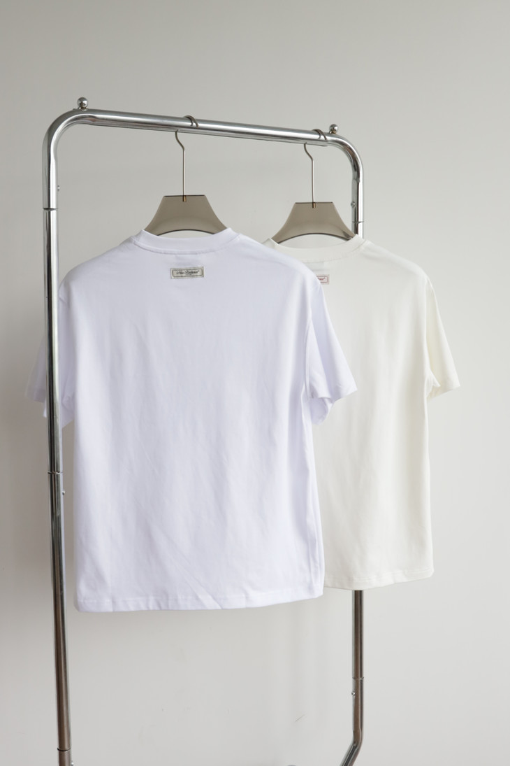 元单 N8 韩单复古宽松字母植绒+刺绣 圆领短袖