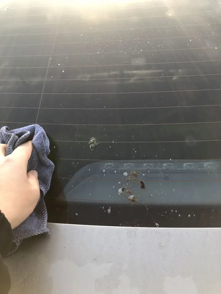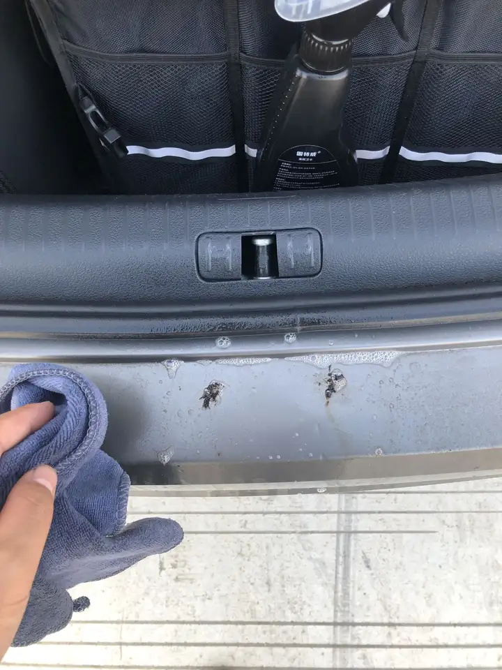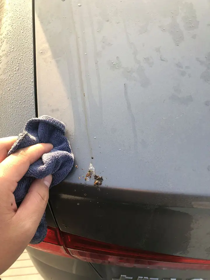 灰尘自己平时可以用水冲洗一下,但是有些树胶鸟粪时间长了就会变得又干又硬,很难清理,所以我就在网上购买了一瓶固特威虫胶卫士,把它放在车上,随时随地都可以,很轻松的就把鸟粪树胶清除干净,图的就是一个方便。