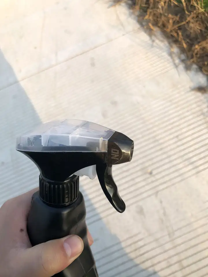 把清洗剂的盖子打开,戳破里面的密封膜,然后把喷头和瓶身连接在一起,再把“ON”一面旋转到最上面,表示开启的意思,这样就可以扣动手柄喷洒清洗剂了。