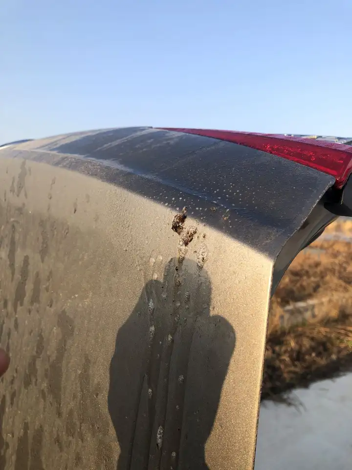 而且树胶鸟粪也会对车漆造成腐蚀,我这台车的车漆是金属漆,硬度比较大,抗腐蚀能力较强一点,但是白色车漆就不行了,长时间被树胶鸟粪腐蚀的话,就会在车漆表面留下黄斑,也会让车漆表面变得更加粗糙。