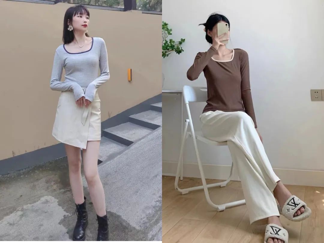 即使弯腰也不容易走光,给到满满的安全感。比较贴心的是,方领两侧顺着脖子的线条下来,刚好隐藏住内衣肩带。