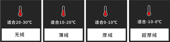 无绒款适合秋天穿,早晚气温较低,空调房冷气也比较足,避免老寒腿。薄绒款适合秋末冬初的季节,气温变化比较快,可以应对10-20°气温。250g厚绒款适合在0-10度气温穿着,绒毛密度更高,厚度适中不笨重。大部分地区秋冬季冷风嗖嗖,穿上它可以抵御寒气!搭配裙子和靴子,像时尚博主一样又酷又时髦!