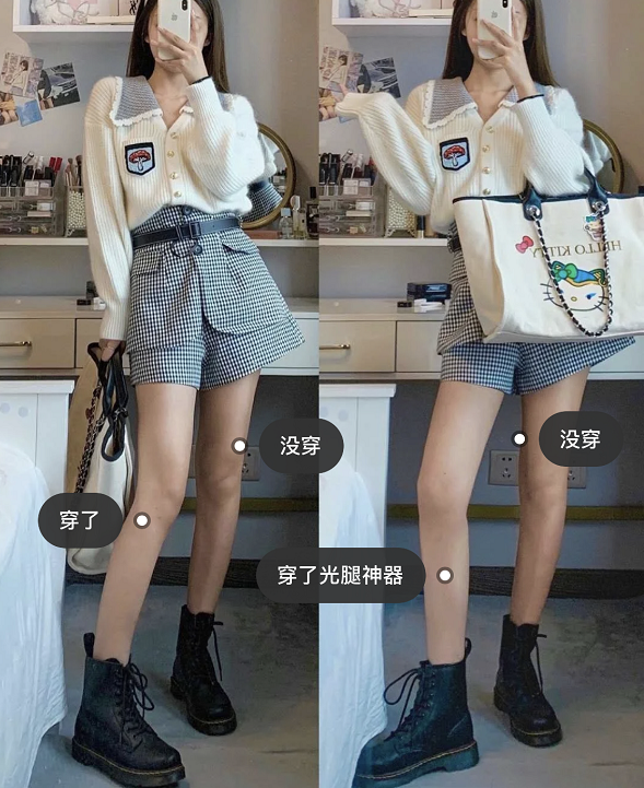 春夏季节气温不是很低的时候,外层可以拆卸下来,直接当超薄丝袜穿。