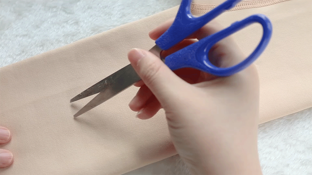 用剪刀剪开一个小口,再使劲拉扯,破开位置也不挂丝脱散。