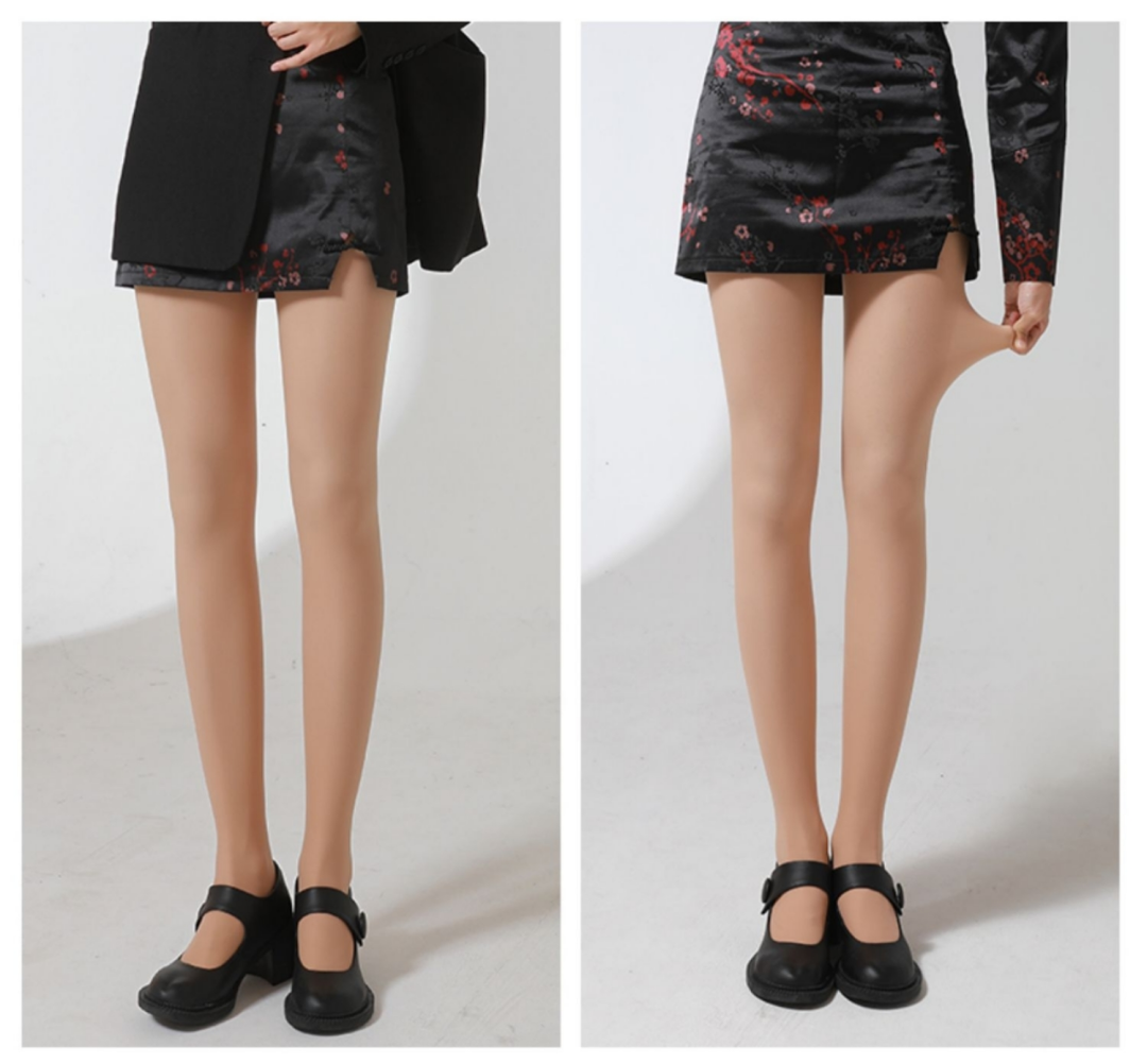 除此之外,YANECINE设计团队还考虑到,针对部分造型需要搭配黑色打底裤,她们开发了超自然透视的性感黑丝光腿神器。抛弃传统黑色打底裤的庄重、厚重感,透视黑更能展现温柔气质和女人味。下图从左到右,温柔感逐渐上升。白皙肤、自然肤、粉底肤、透视黑一共4种颜色,最畅销的是白皙肤+透视黑,买两条搭配不同造型换着穿!很多女生因为经常穿长裤,腿部皮肤往往都比手臂更白,选择白皙肤刚好合适,看起来自然白净,即便是户外阳光下,靠近细看也很像裸腿。除了颜色仿真度高,它的双层莱卡纱线设计,也让双腿看起来更自然,摸起来就像光腿穿了一条超薄丝袜一样,丝滑白嫩。