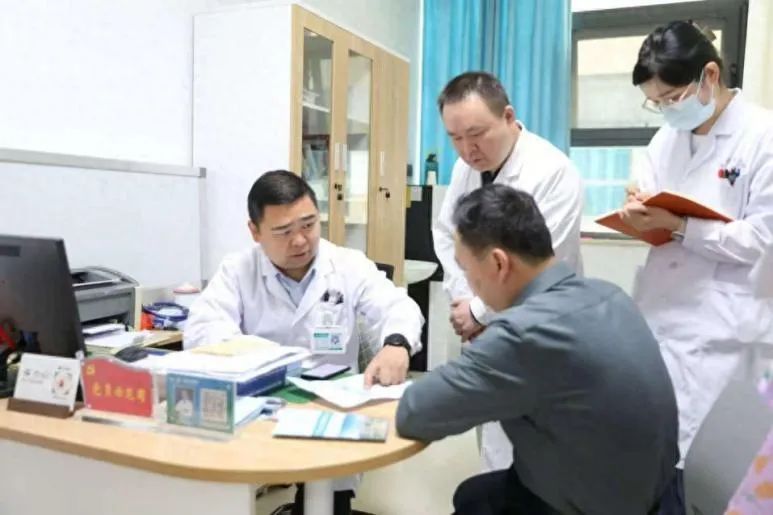河南省肿瘤医院肿瘤内科副主任医师何振(左一)看诊。受访者供图