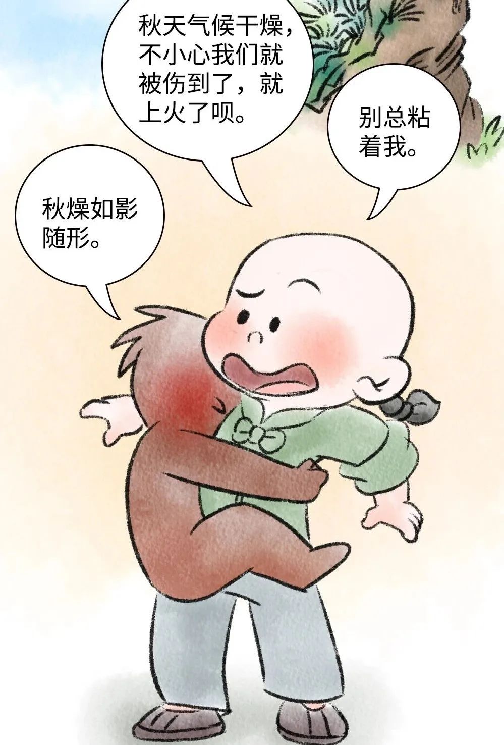 秋燥:三伏养足了阳气,同时也消耗了很多津液,加上秋季燥邪当令,容易耗伤津液,如果平日里津液就不足的人最近开始出现一系列的干燥反应,比如嘴唇干燥起皮,眼睛干涩疼,鼻子干燥有血,粑粑干燥,有的人脱发日益严重,有的人开始睡不着……