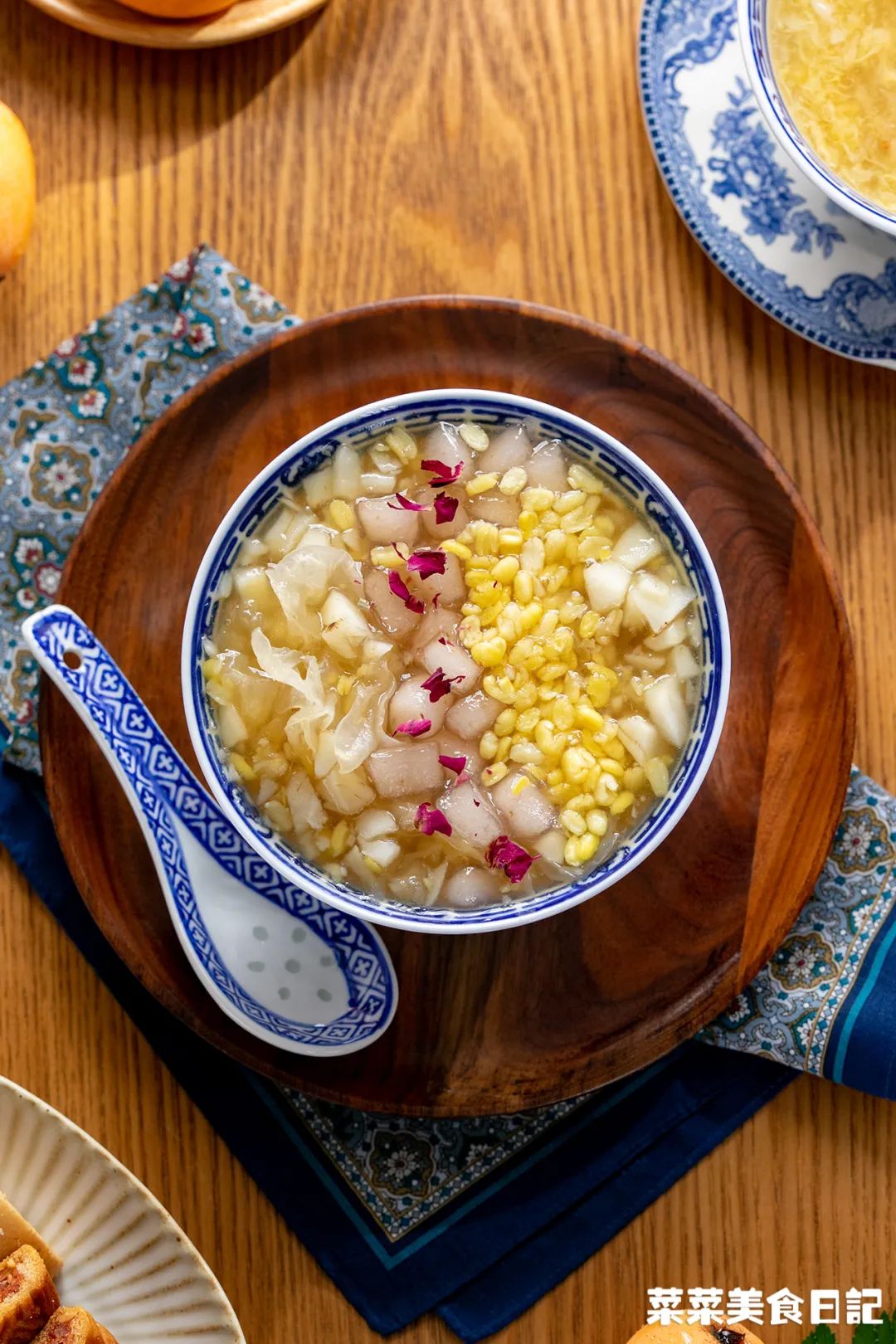 绿豆占据了半片江山,糖水里染出温柔的鹅黄。