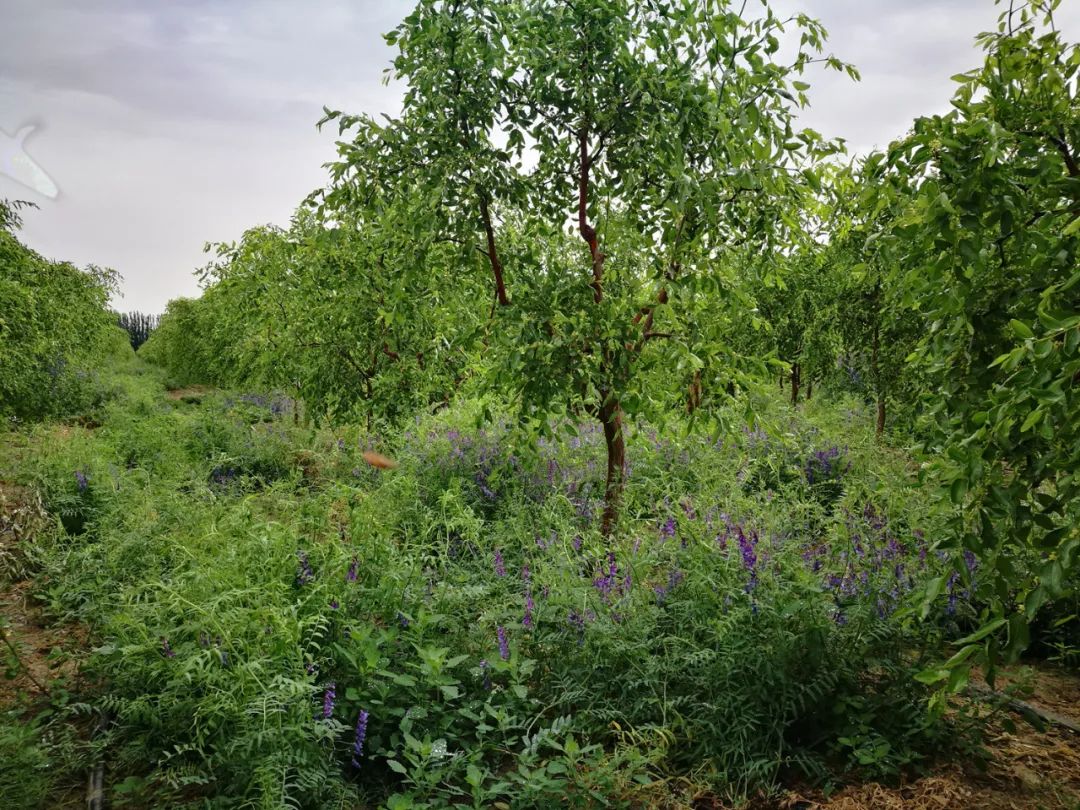 经过研究,高展选择了耐寒耐贫瘠根系分泌物具有解磷效果的十字花科绿肥 -- 二月兰。当九月底毛叶苕子翻压入土,二月兰种上,尤其二月兰出苗后不怕踩踏,不会影响收枣子;一直到来年三四月份,气温快速回升,二月兰抽薹开花,接上了毛叶苕子的种植。