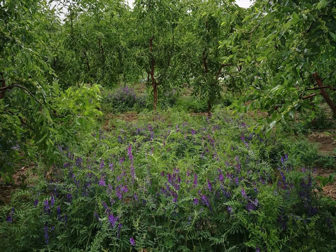 那段时间,高展夜夜失眠,睡不着就去地里转,看着刚坐上果的枣子因为缺水不断掉落,高展忽然发现毛叶苕子似乎丝毫不受缺水的影响,朵朵紫色的小花片片开放,毛叶苕子生长浓密的地方,枣树的花开的很好,坐上的枣子也都稳当,极少落果。
