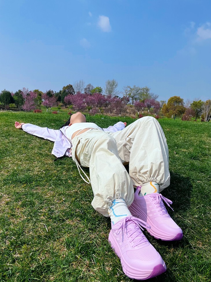 鞋子很好穿!是那种软软的,有点踩屎感但又防滑的,还比较厚底防撞,很适合水泥路和土路的那种徒步路线~而且还比较增高哈哈哈!