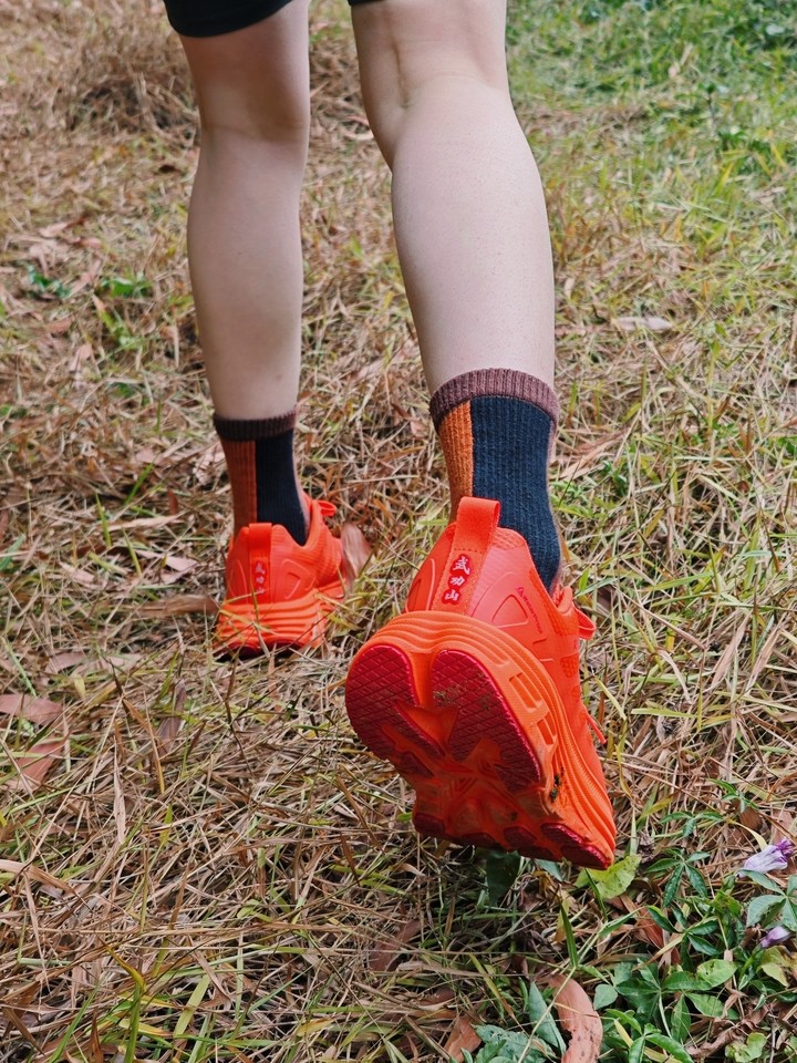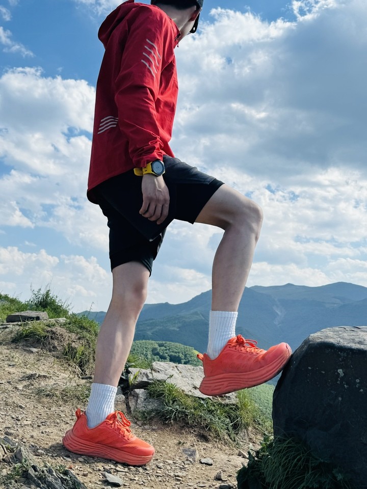 鞋子上脚很轻,减负减重,大体重男生也OK,宽楦穿着舒适,鞋底软有回弹,下山的时候很给力,不会膝盖痛。