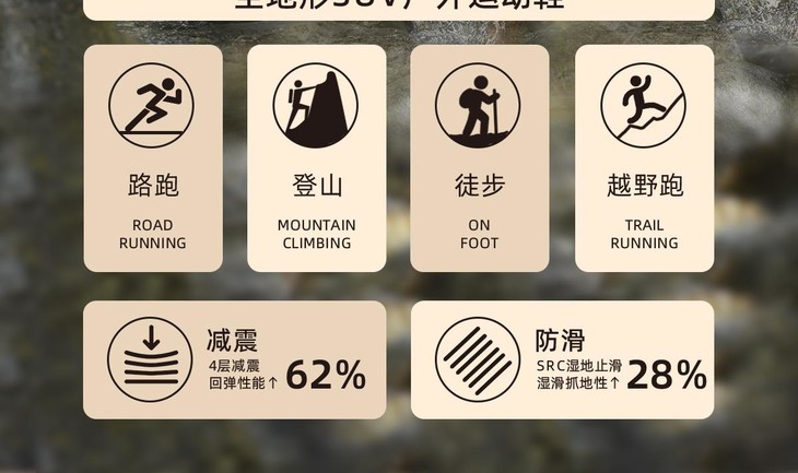 防滑是真的顶,爬山下坡不打滑,耐磨性拉满,鞋面好打理,踩到水坑都不带怕的。支持国货品牌!