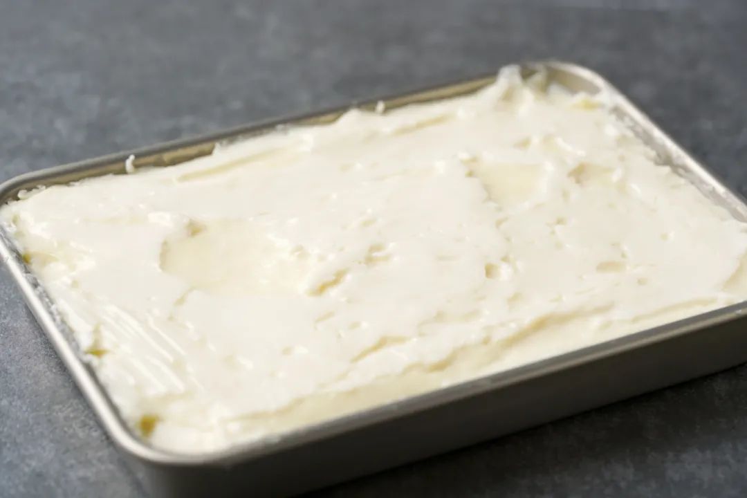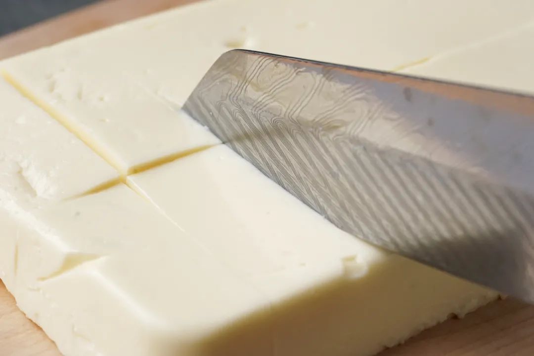 3、冷藏好后取出,切成麻将大小的牛奶块。