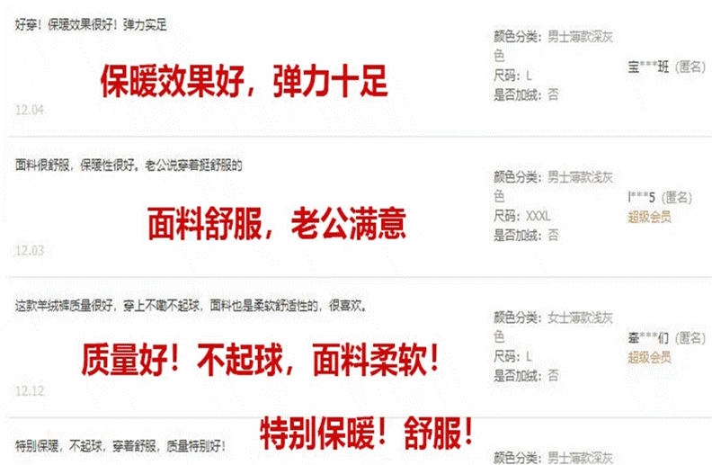 它是山羊皮肤根部长出来的细软绒毛,仅占动物纤维总产量的千分之二,属于珍贵稀有的纺织原料。也不是什么地方的羊都能产羊绒,只有高原高寒地区的山羊才能生长羊绒;宾卡加选用的,更是市场上稀缺的阿尔巴斯白绒山羊羊绒。这个品种的山羊,羊绒纤维细长、手感柔软、拉力大、光泽好、颜色正白!而且牧民都是采用自然手工梳理的方法梳理收集羊绒,产量稀少,自然非常珍贵!但是宾卡加选用的山羊绒,主要成分是角蛋白质,纤维的鳞片是环状闭合的。摸着就像一朵软糯的云,穿上身跟第二层肌肤一样自然,舒服到酥!这是因为羊绒的细度低于15.5μm,只有头发的1/5,羊绒细度决定了它的舒适性及保暖性能。充盈细密的羊绒能够储存大量的热量,防止空气流动带走人体本身的能量。一条合格的保暖裤,不仅要保暖,还要轻盈显身材,不臃肿。高腰设计,能微微遮住小肚子;轻薄贴身,腿部线体尽显!基本都是“质量好”“入手不亏”“满意”,大家对它的满意度和复购率都是极高的!古代只有大户人家才买的起,哪怕现在,一条好点的羊绒裤都是要大几百上千起步的!我们直接和工厂对接,没有层层中间加价,市面上几百上千元的羊绒裤,被我们砍到了249元起!那可是羊绒含量高达97.1%的羊绒裤啊,这个价说是成本价都不为过了。品牌方还考虑到不同地域温度不同,特地设计了薄款、厚款两种不同厚度:这款羊绒裤优点是真的多,如果一定要说缺点就是:数量不多!由于今年寒潮突来,服装工厂备货不多,高品质的产品,往往产能是比较慢的,所以这批羊绒裤库存也很有限,只剩500件!最后我强烈建议大家可以给父母各买一条,应该让他们也体验下高品质带来的舒适感受。所以省下一顿吃饭的钱,给父母也各买一条羊绒裤,温暖的同时,也让他们少生病更健康,这才是对父母最好最温暖的爱! 一条好的羊绒裤,除了原料和含绒量,做工方面也丝毫不马虎!你触摸它的一刻,可以清晰地感知到轻柔、细腻、软糯、爽滑的感觉;做工好到我们做了极端实验,用胶布使劲粘也没有毛掉下。宾卡加羊绒裤不仅保暖,透气性还贼好,肌肤可以自由地呼吸。天然防静电,冬天穿脱也不会噼里啪啦直响,被静电弄得一身不舒服。我们直接和工厂对接,没有层层中间加价,市面上几百上千元的羊绒裤,被我们砍到了249元起!那可是羊绒含量高达97.1%的羊绒裤啊,这个价说是成本价都不为过了。廉价秋裤穿一个冬天就报废了,体验感又差,可谓花钱买了个难受。而会精打细算的人,宁愿多花点钱买件好的,多穿几冬,这才是省钱的正确打开方式。最后我强烈建议大家可以给父母各买一条,应该让他们也体验下高品质带来的舒适感受。一年也就奢侈那么一回,给父母也各买一条羊绒裤,温暖的同时,也让他们少生病更健康,这才是对父母最好最温暖的爱! 注: