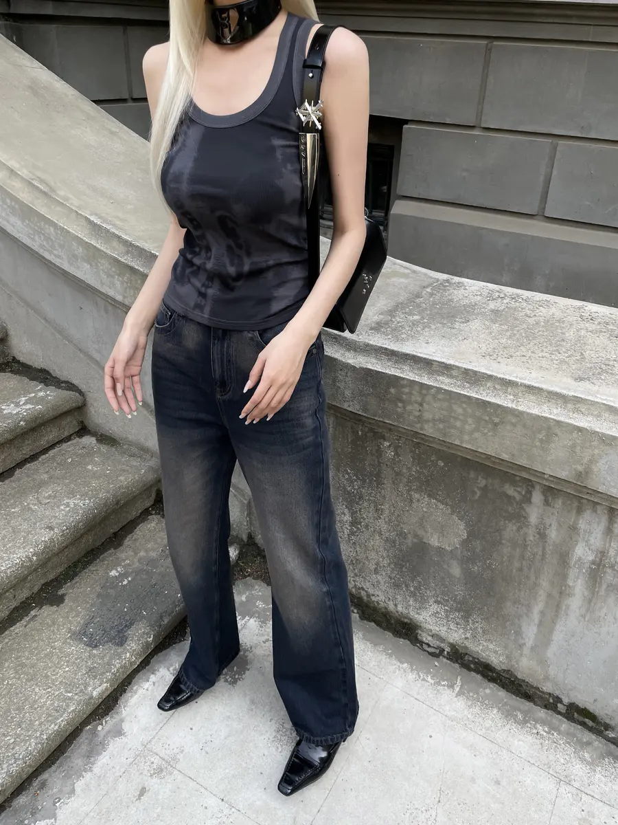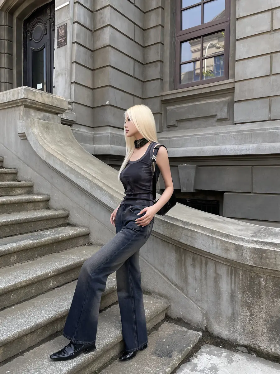 新品上身|印花背心+微喇牛仔裤,绝配的一套🖤