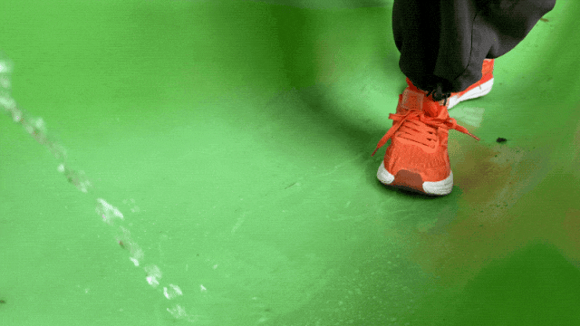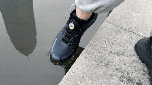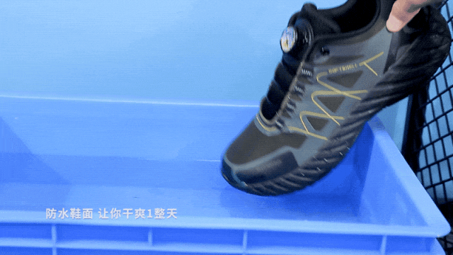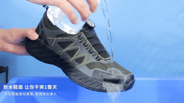 把水直接倒在鞋面上,瞬间就被一层“肉眼不可见”的微小纤维弹开,无法渗透,就像给鞋子穿了一层“防护服”一样!