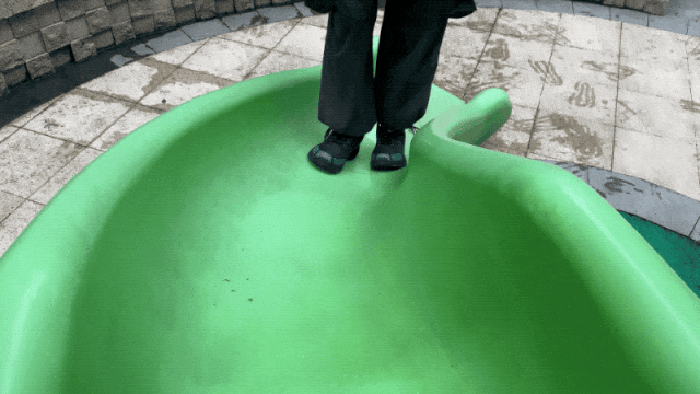 这个坡度倒上水,普通鞋子走上去如何呢?