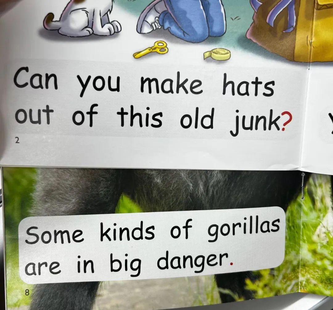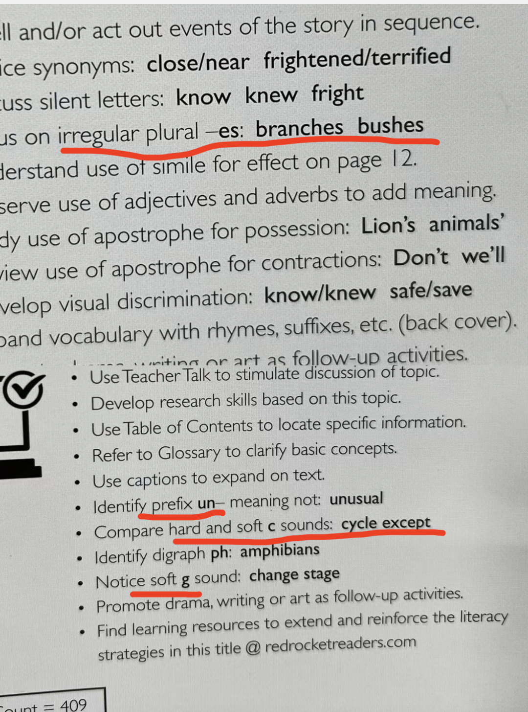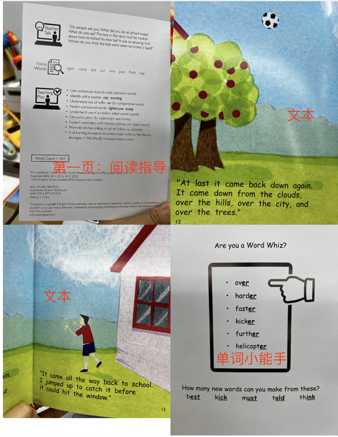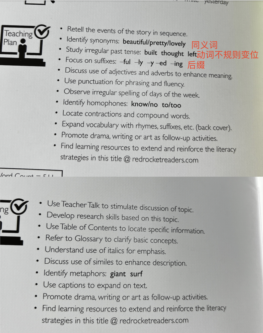仔细看,不管是Fiction(故事类)还是Non-Fiction(科普类)的册子,我们都会发现,所有的句子的标点都是红色的。
