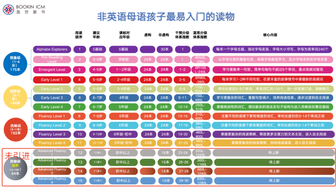 以上这两个阶段共126本书(字母探险家+粉色+玫红), 建议用6个月左右的时间刷完即可: