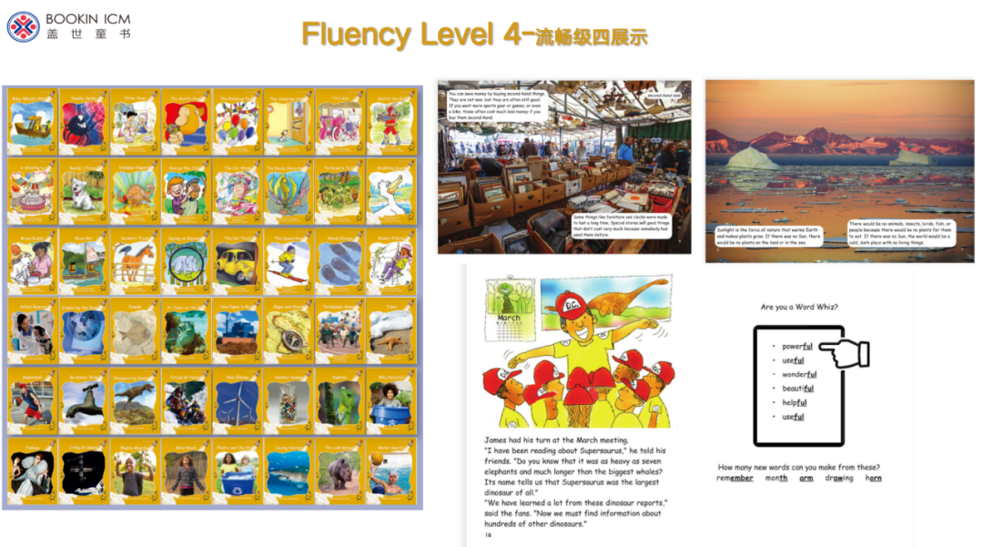 这一级开始让孩子接触动词过去时态,以及更多的拼读知识和字母组合。故事类的情节更加复杂了,纪实类的信息量更大了,孩子们将会学到更多的阅读技巧和丰富有趣的知识。
