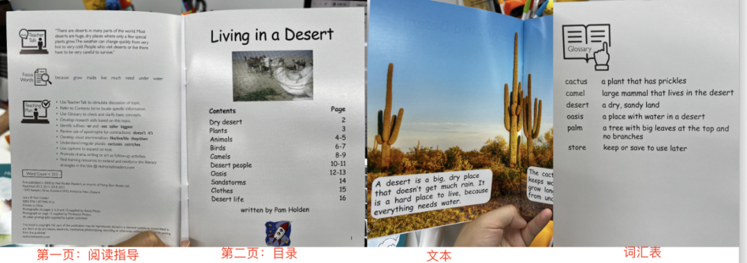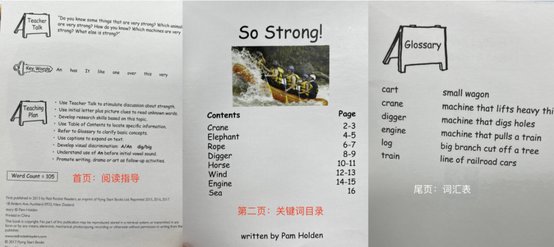从这个级别开始,每本书的最后一页从关键词闪卡变成了词汇表,词汇表Glossary 是用英文来标注单词意思的。科普类的读本还在第二页增加了目录。